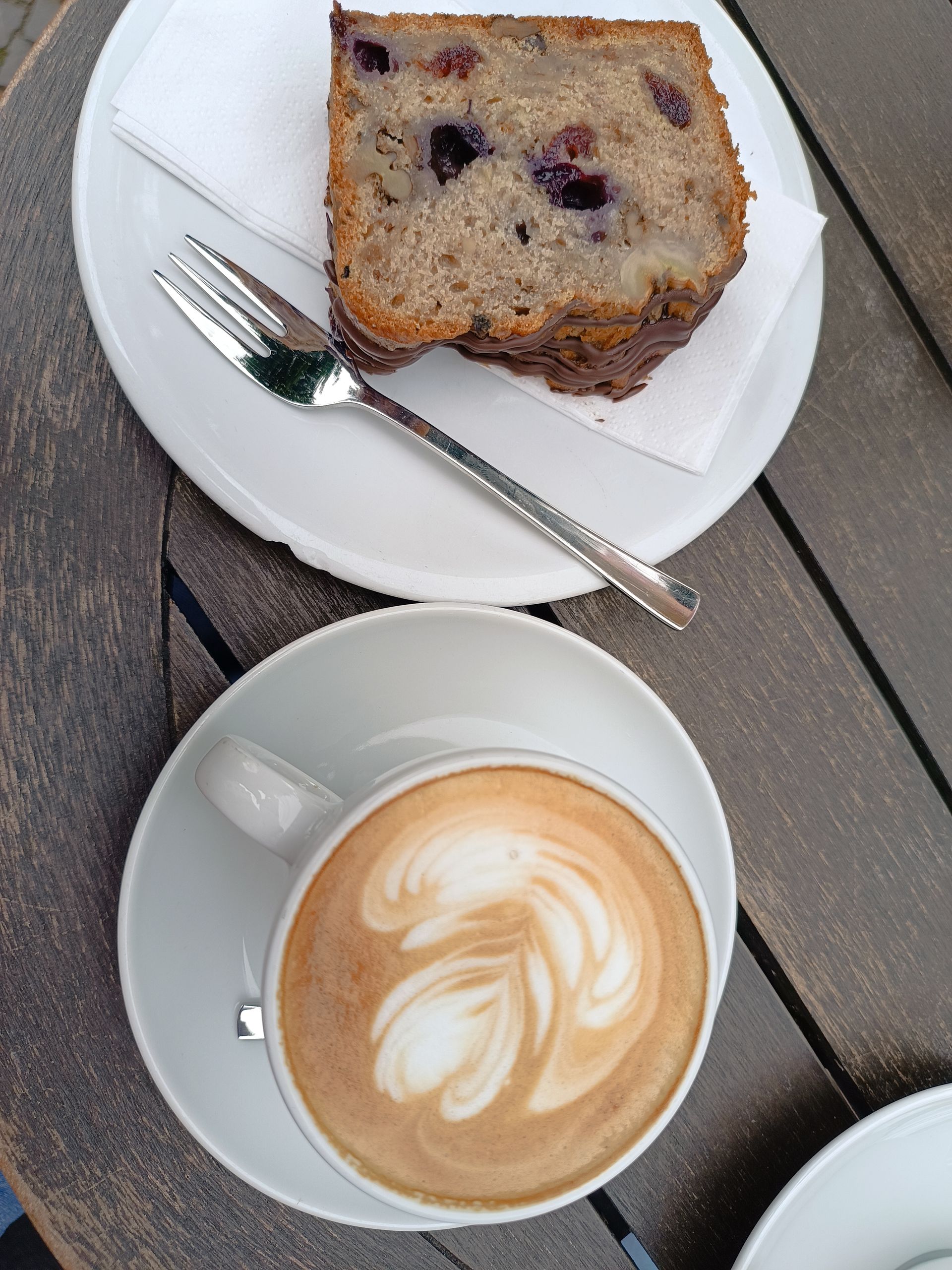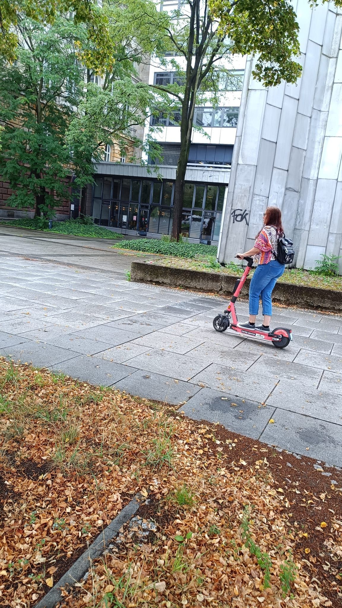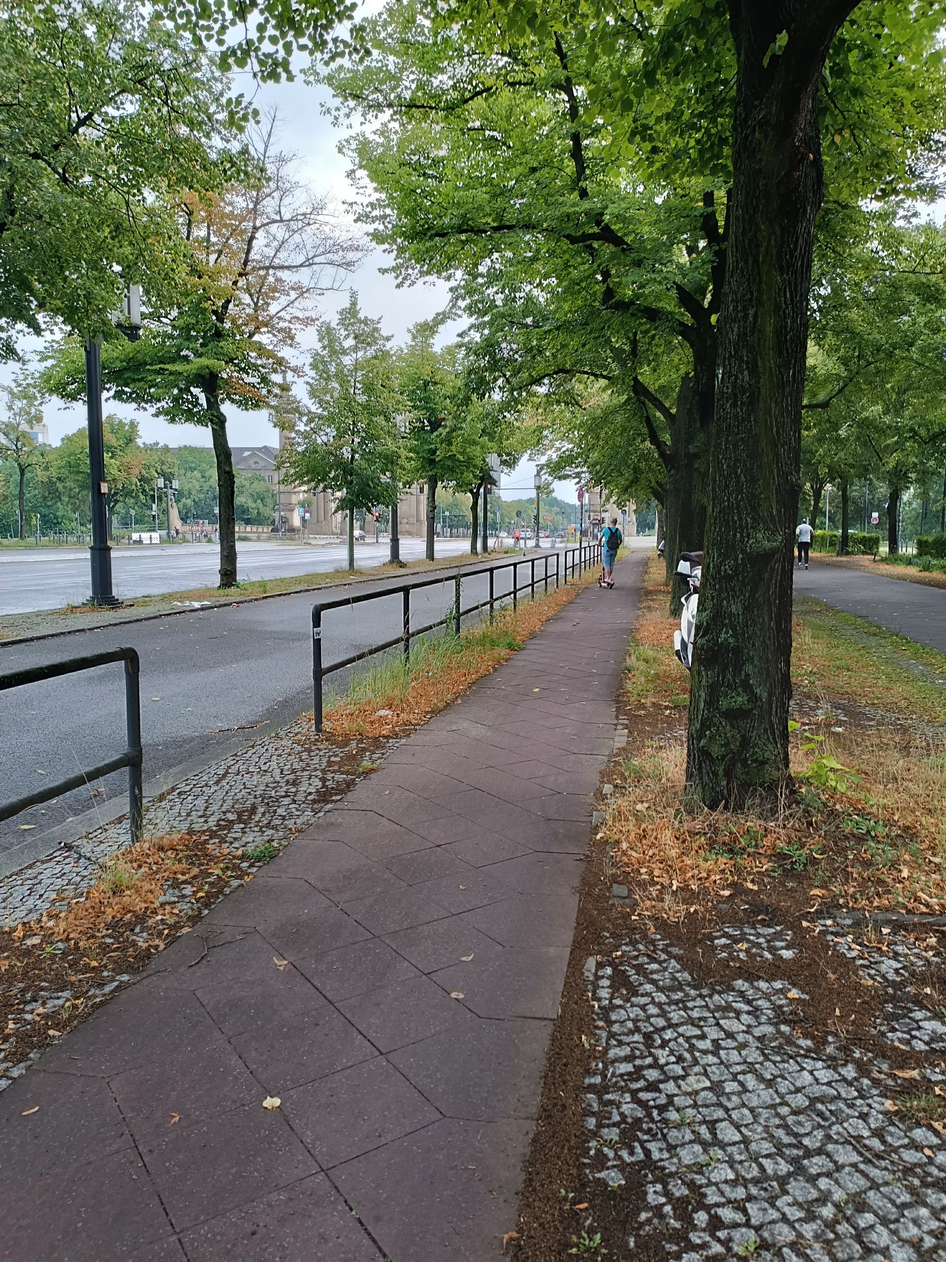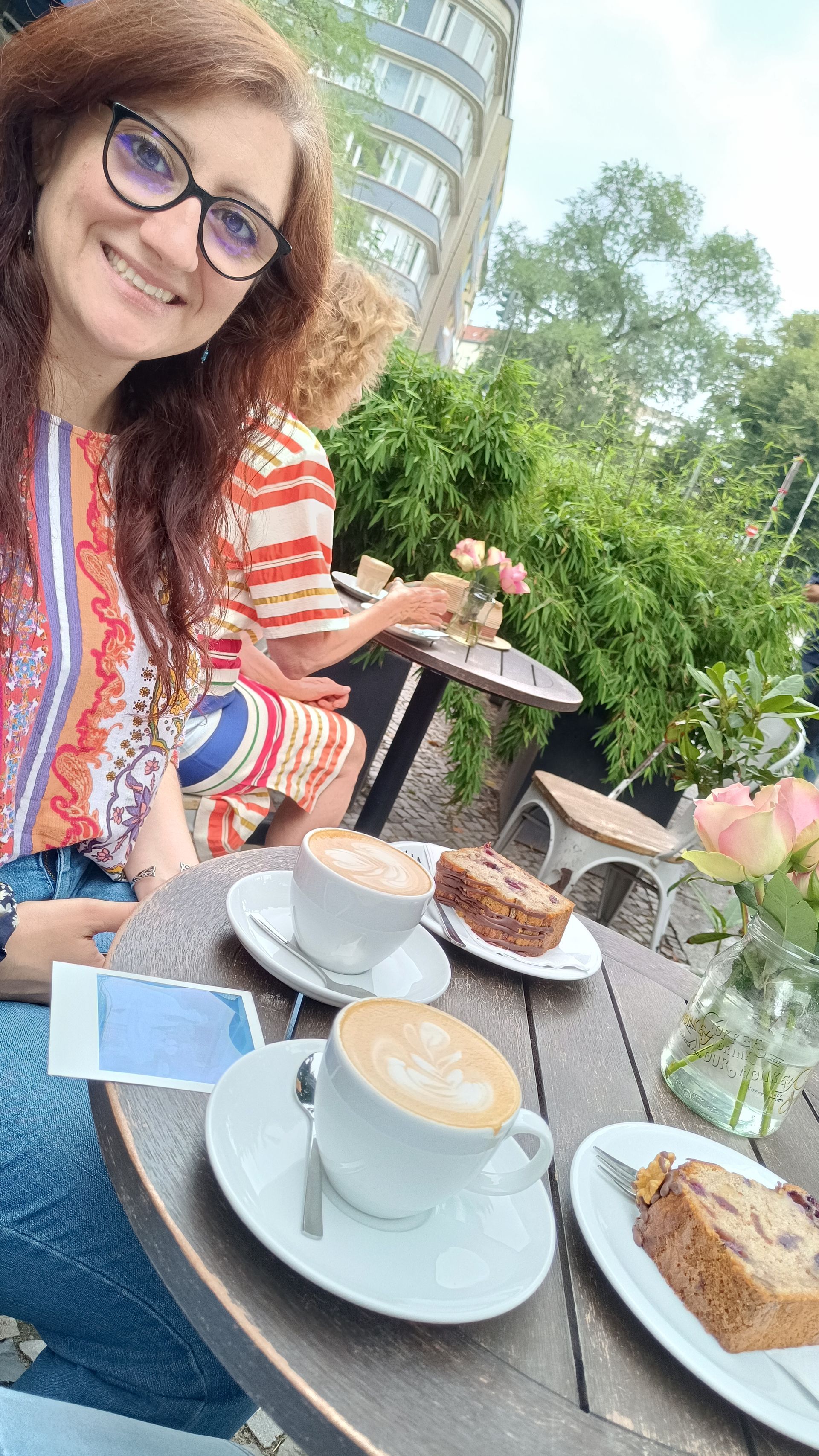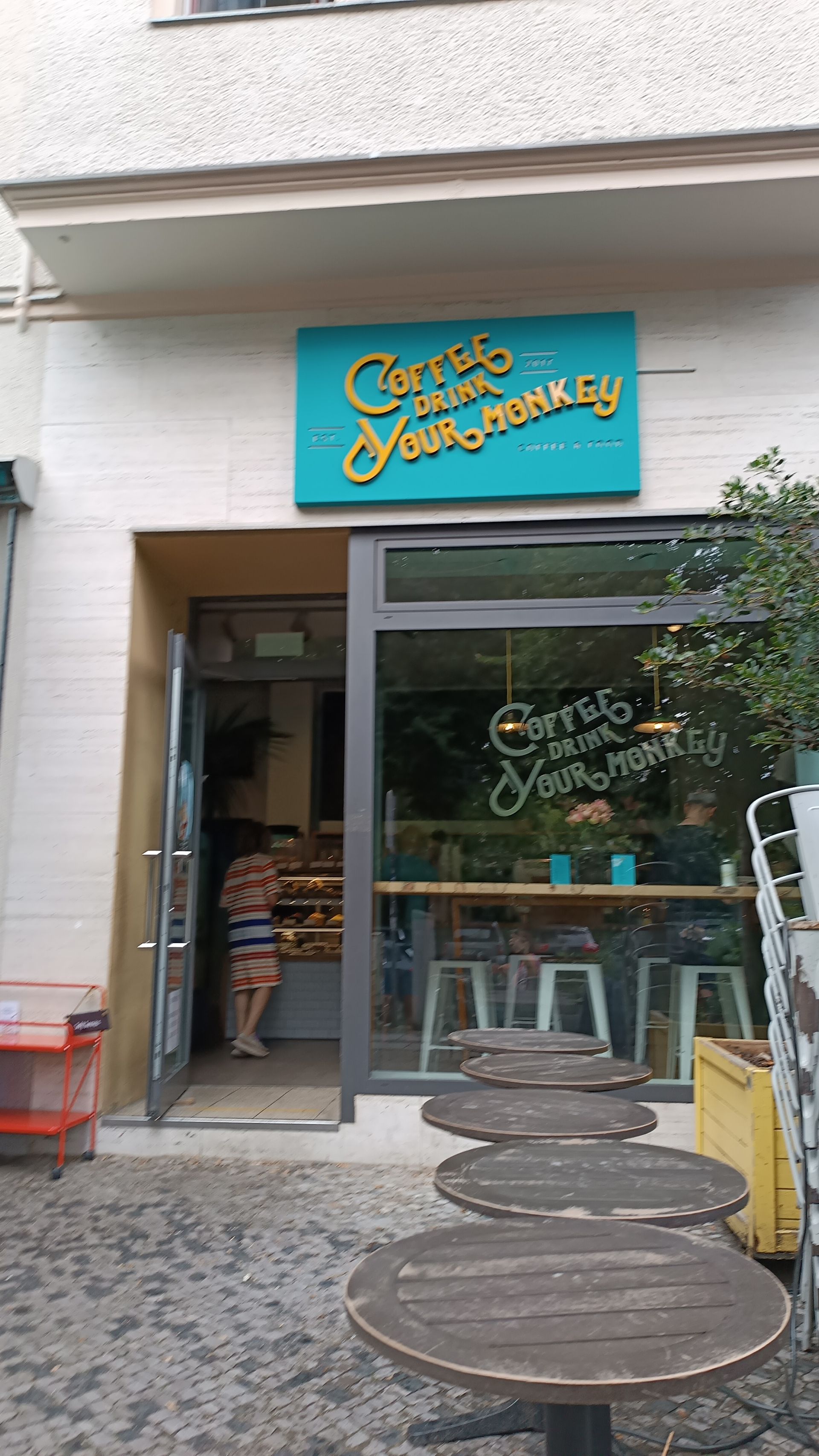 Cécile se réveille. Je prépare le café et nous nous préparons. Le marché aux puces est près de chez nous. C’est une bonne nouvelle ! Nous nous dirigeons donc vers la porte de Charlottenburg pour voir ce qu’il y a. Nous essayons les trottinettes électriques. Une grande première pour Cécile ! Nous arrivons à l’endroit indiqué mais il n’y a personne. Un peu déçu, nous laissons les trottinettes et nous prenons les transports en communs. Nous montons dans un S-bahn direction le centre de Berlin. Mais celui-ci part dans le sens inverse et nous ramène presque là où nous étions. Nous arrivons donc à SavignyPlatz. Nous connaissons cette place. Nous nous y arrêtons pour prendre un café (et une part de gâteau). Nous regardons ce que nous pouvons faire, mais entre la recherche d’un marché fantôme, les travaux sur les trains… nous sommes en retard sur ce que nous avions prévu.