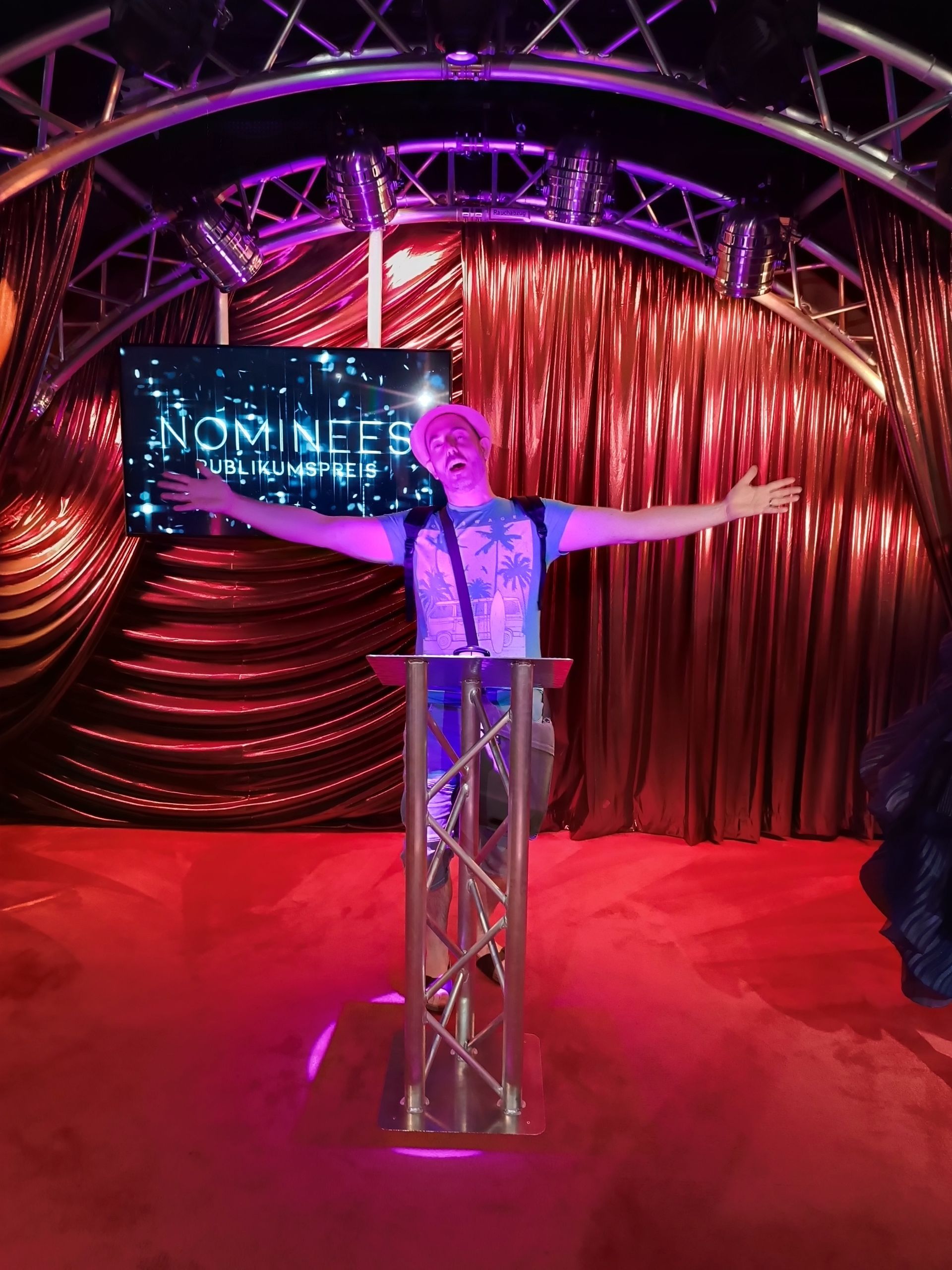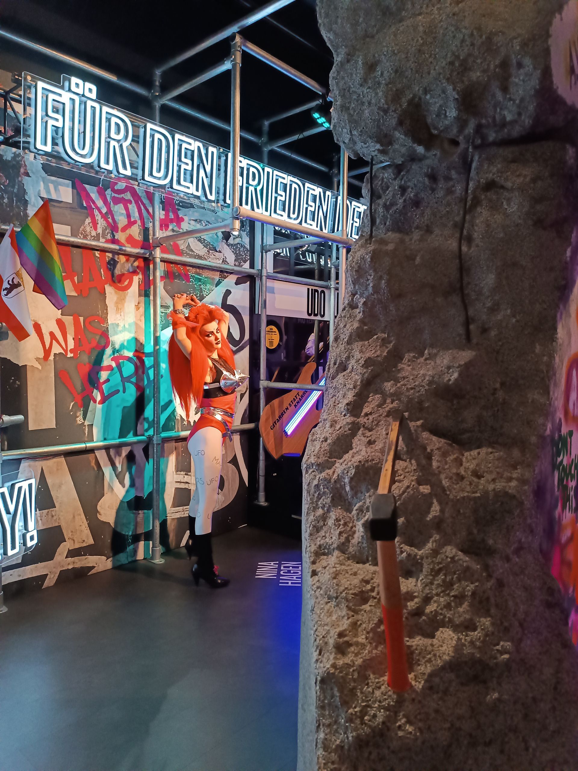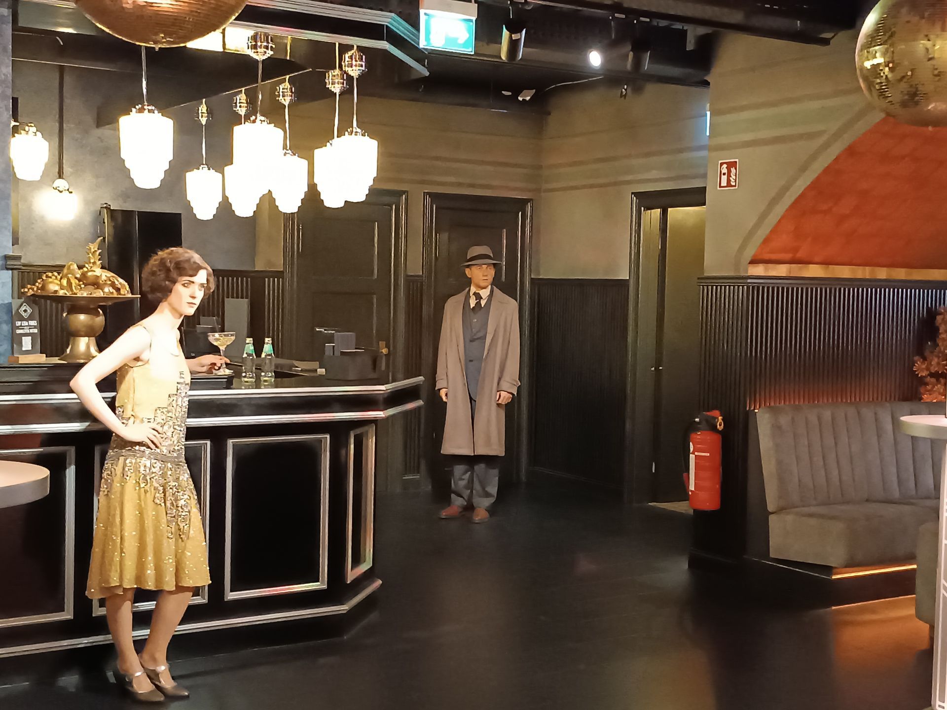 Nous suivons une famille allemande qui à même prévu des habits pour les photos… ! Ca ne rigole pas ! Nous parcourons donc les salles. Les premières salles sont des stars germaniques de la télévision, nous n’en connaissons aucunes. Puis arrive les stars internationales et les acteurs de Babylone Berlin. Nous nous amusons donc à prendre la pause avec tous les personnages.