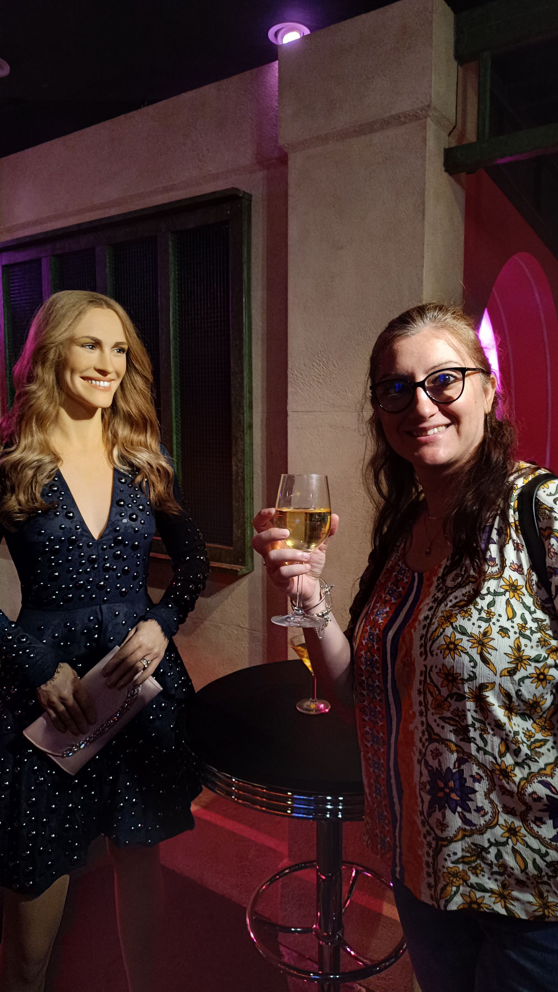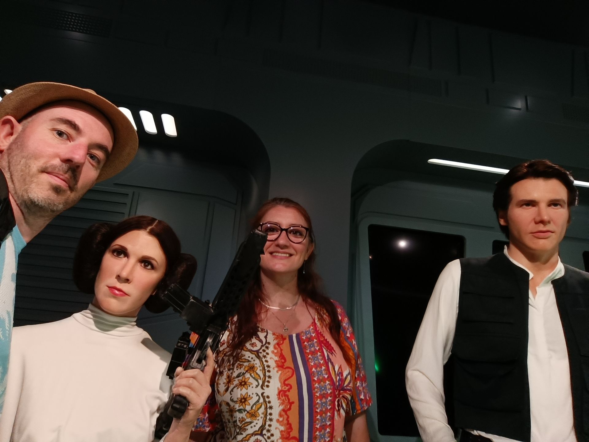 Nous allons dans le centre pour faire le musée de Madame Tussauds. Le concept est simple, ils reproduisent en cire des personnalités fictives ou réelles et nous pouvons prendre des photos avec. Le temps est toujours incertain, et à la sortie du U-Bahn les gouttes de pluie se joignent à nous. Nous nous retrouvons avec une foule de personnes à vouloir faire le musée avec nous.