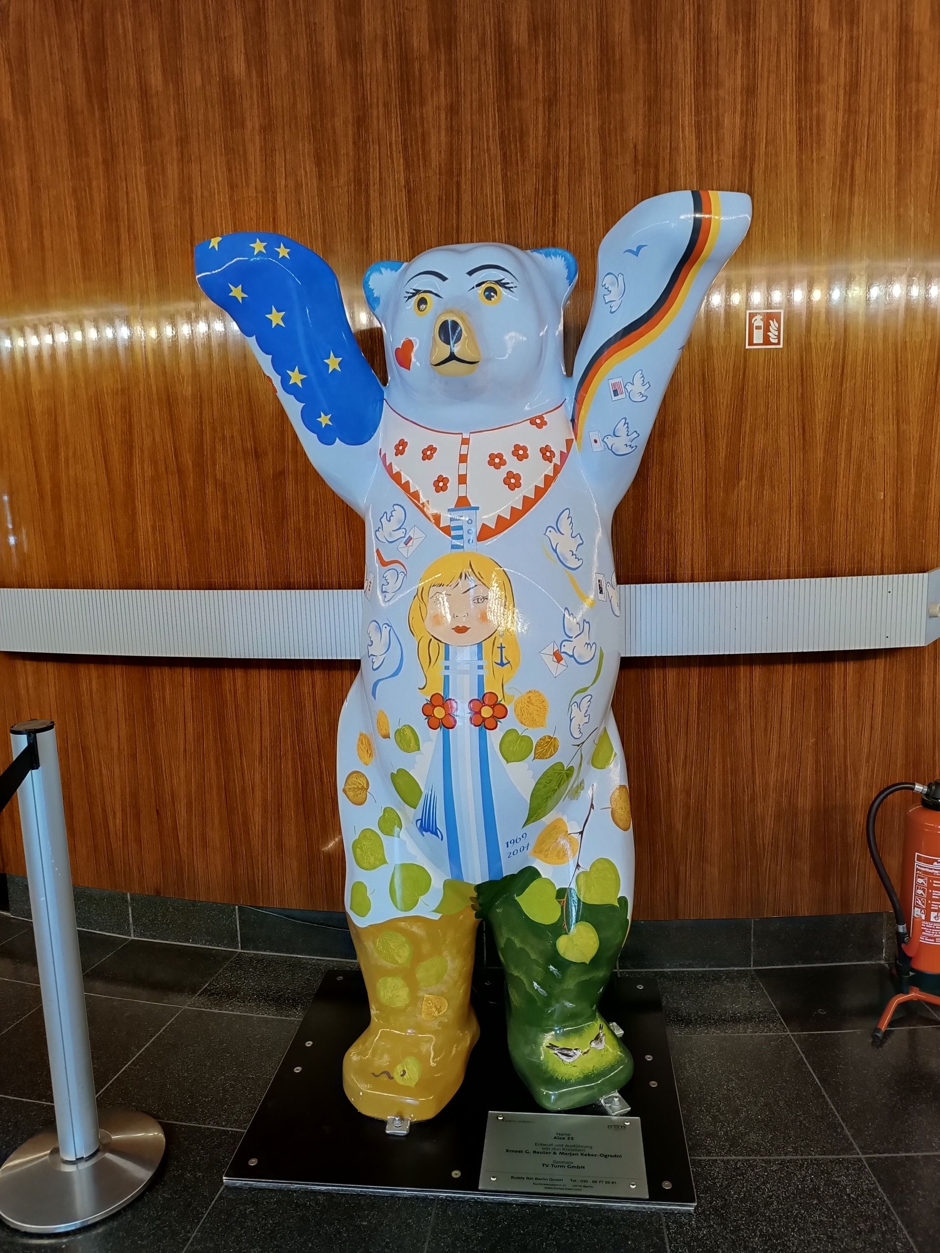 Nous nous présentons à l’accueil de la Fernsehturm. Comprenez, la Tour de Télévision de Berlin. Il s'agit de l'édifice le plus haut d'Allemagne et le quatrième plus haut d'Europe, avec 368 mètres de haut. En 1969, l'année de sa construction, elle est le deuxième émetteur de télévision le plus élevé au monde.