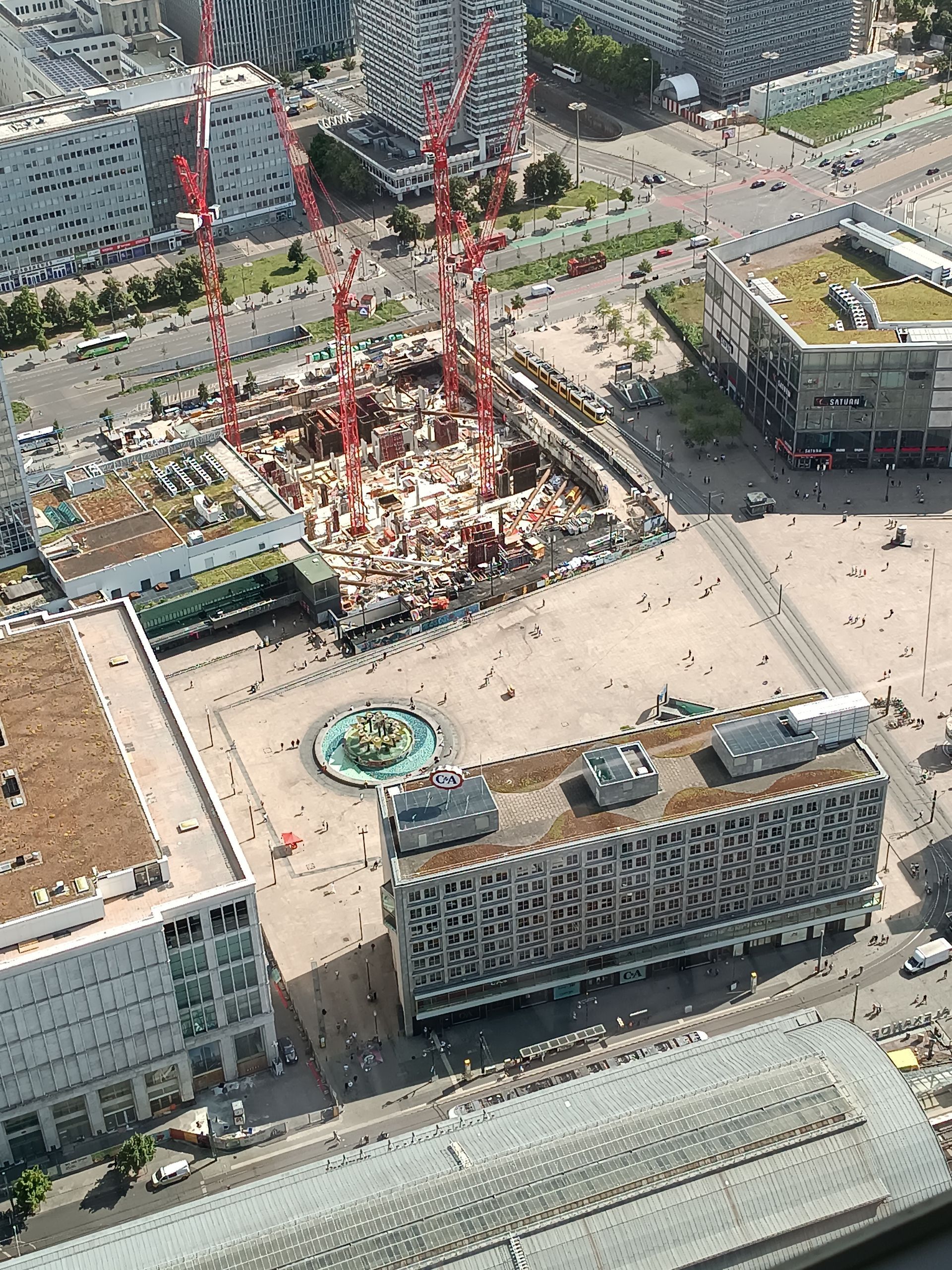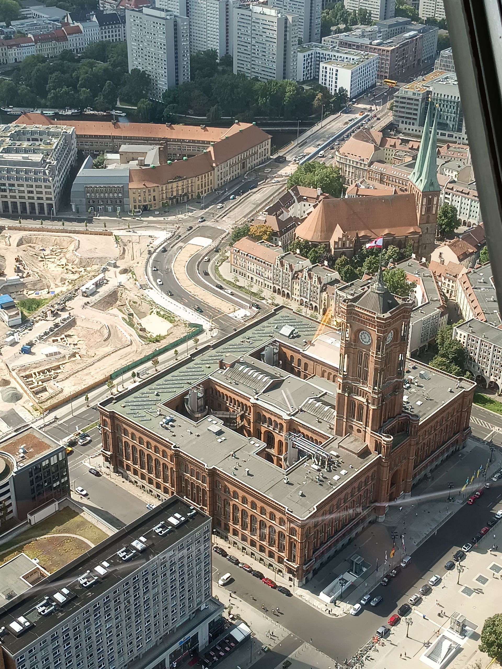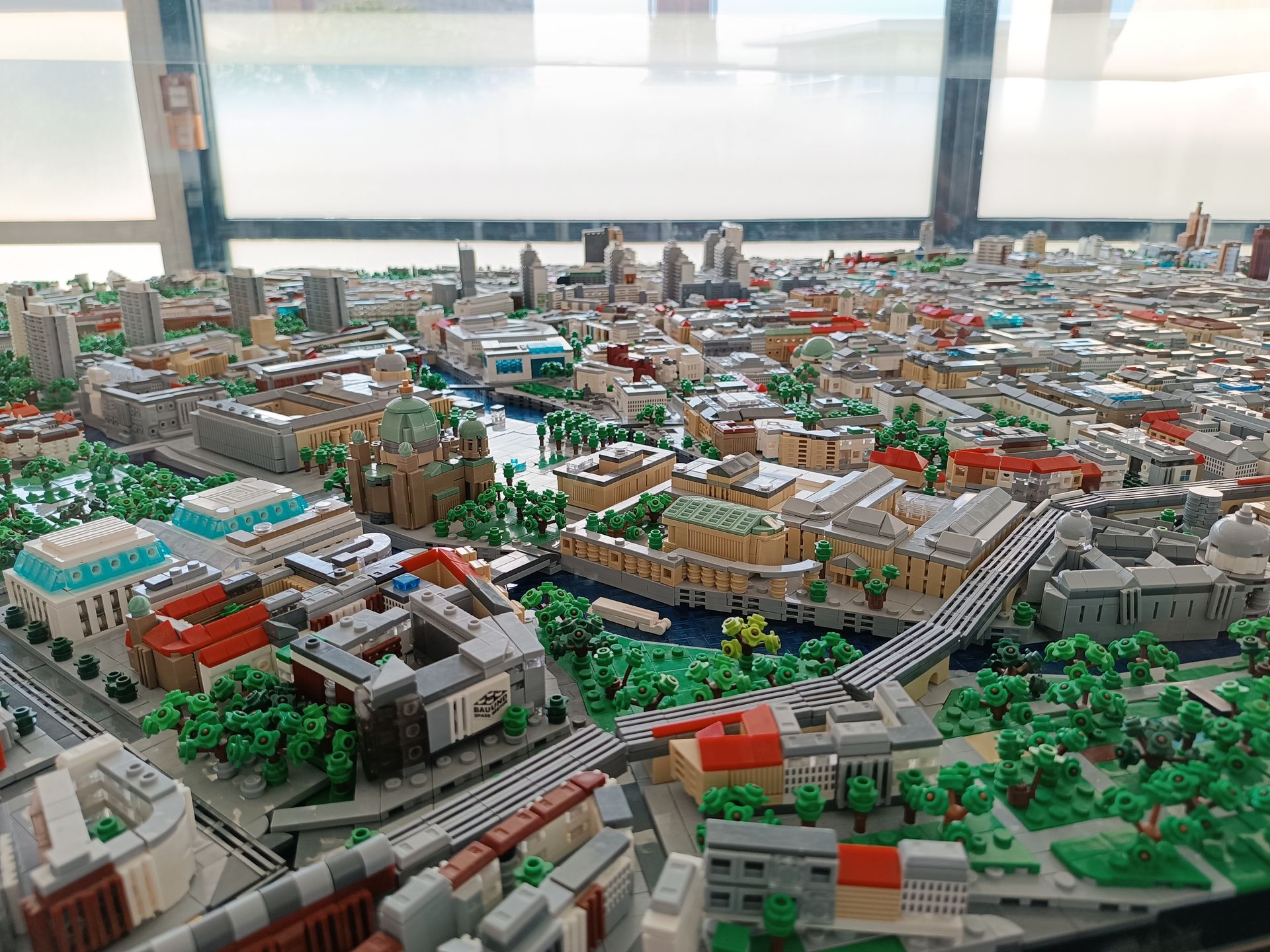 En arrivant, la vue est à couper le souffle. Nous voyons tout Berlin à 360°. Sous chaque fenêtre panoramique se trouve une photo avec les grands bâtiments et places de Berlin. Le temps est clair, le soleil est présent, la vue est incroyable. Nous faisons le tour 4 ou 5 fois en regardant les perspectives de la ville.